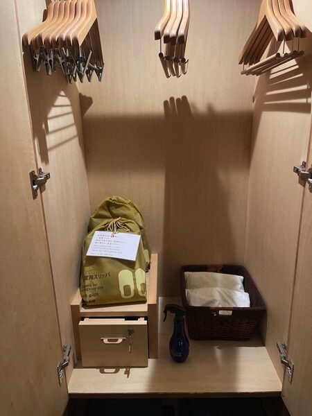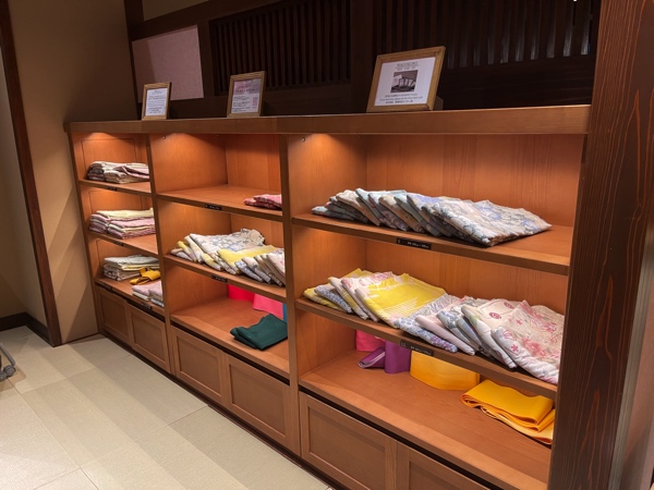 浴衣が置いてあるので、浴衣を着たい場合はここから選んできるようになっています。