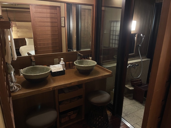 他にもある「離れ 飛雲」「離れ 瑞雲」「本館 和洋スイート」は内風呂が「シャワーブース付檜内風呂」となっています。