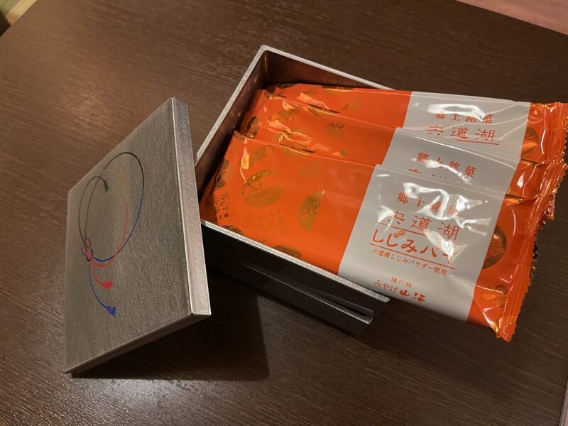 しじみパイと、ノドグロ煎餅が置いてありました。