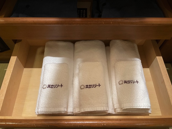 今回宿泊したのは4人部屋だったので、このようなセットが2箇所に用意されていました。