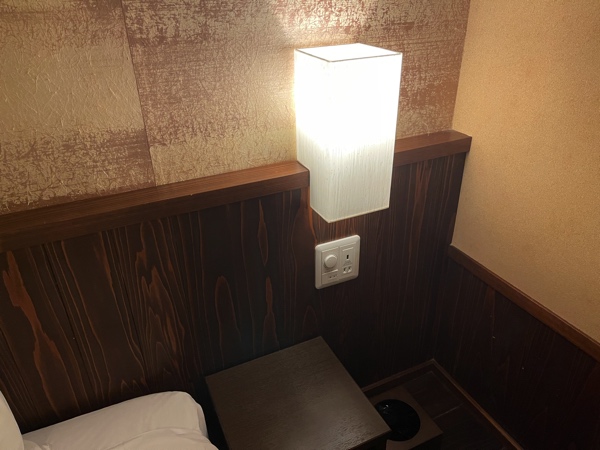 それぞれのベッドサイドには照明の調節と、USB、コンセントが用意されているので、奪い合いになることもなく自由に使えるのが地味に嬉しいポイント。