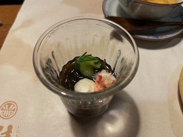 ベニズワイガニが入ったもずく酢。